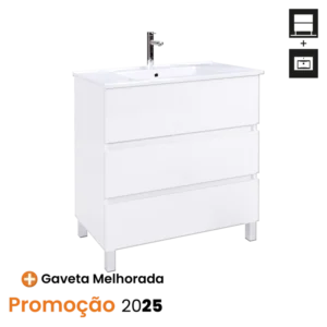 Informação acerca do produto Móvel C/Pés – 3 Gavetas; Cores -Branco -Carvalho Hera -Dimensões=60 e 80 -Portas com fecho amortecido -Puxador Integrado na Porta -Lavatório Cerâmico Incluído -Peças de Substituição Móvel Fornecido Montado Coleção C/Móvel Auxiliar Fabricado em Portugal Garantia 3 Anos Lavatório, Torneira e Espelho não Incluído